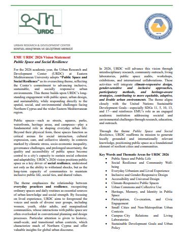 Eastern Mediterranean University Urban Research and Development Center (EMU URDC) willbe organizing a 'Series of Events for the Development of National / International ResearchProjects' in the short and medium term in 2024, in collaboration with different non-governmental organizations and institutions within and/or outside the university; and/ordifferent academic units within our university.