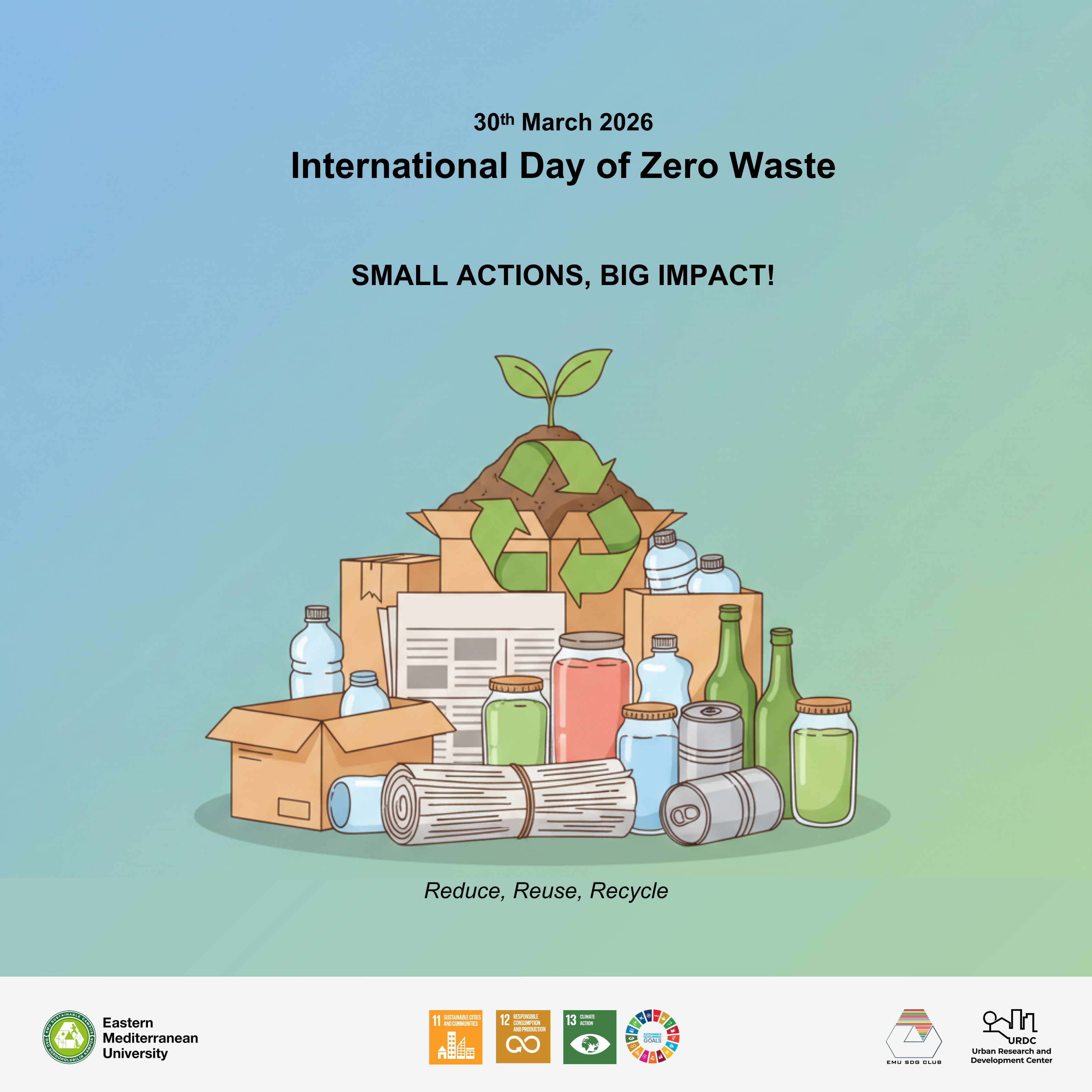 On 30 March, International Day of Zero Waste, EMU URDC in collaboration with the Department of Architecture and EMU-SDGs Club emphasize the importance of everyday actions in reducing waste, promoting recycling, and encouraging more responsible consumption patterns.